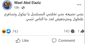 نشر وائل عبد العزيز، شقيق الفنانة ياسمين عبد العزيز، منشورًا ينصح فيه الفنانة نيكول سابا مازحًا بمغادرة مصر بعد انتهاء تصوير مسلسل "وتقابل حبيب"، حيث قال: "بصي نصيحة مني تخلصي المسلسل يا نيكول .. وتسافري علطول .. مترجعيش لحد ما الناس تنسى".