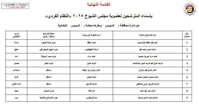 - السويس يتنافس 9 مرشحين على مقعد واحد