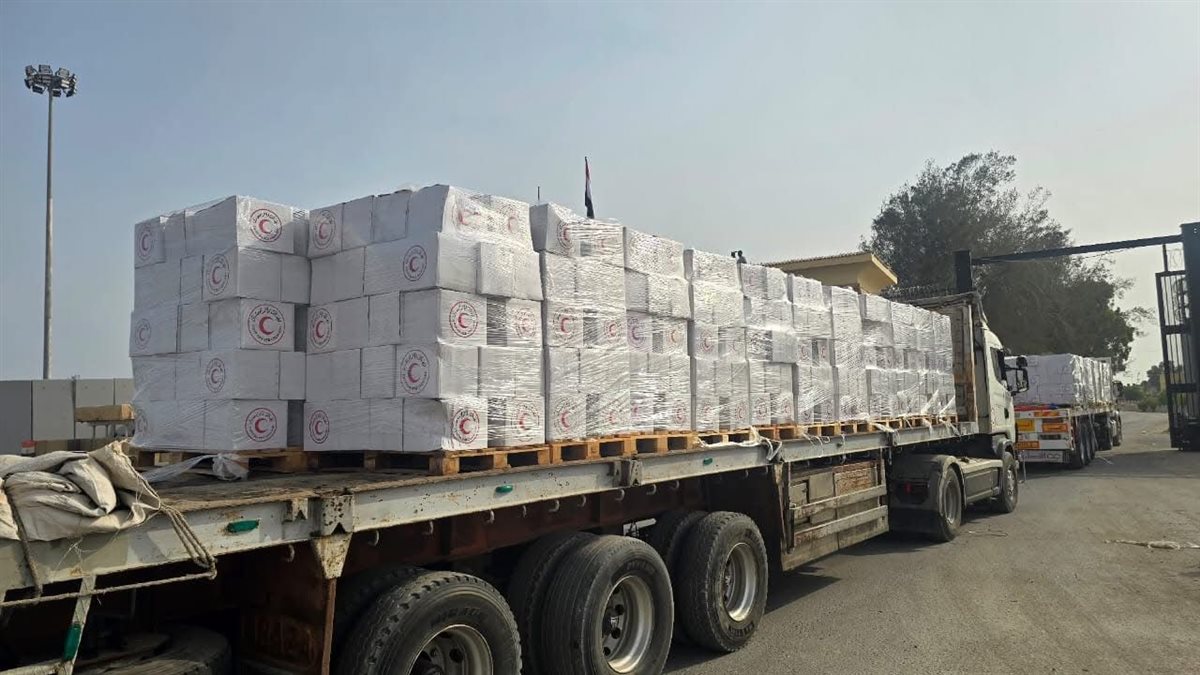الهلال الأحمر يدفع أكثر من 185 شاحنة تحمل نحو 3200 طن مساعدات إنسانية لغزة