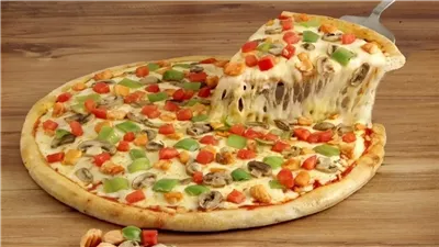 - البيتزا: تفرد العجينة وتضاف الصلصة والجبن والمكونات المفضلة، ثم تخبز 15 دقيقة.