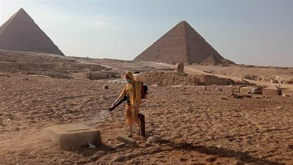 وقام أطباء الطب البيطري بعمل التركيبات اللازمة وتم رش تلك المبيدات الآمنة حول منطقة الزيارة للقضاء على القراض، للحفاظ علي صحة وسلامة الحيوانات العامله في محيط منطقة الأهرامات، وتوفير بيئة آمنة للزائرين.