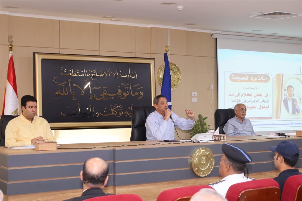 عقد اللواء أ.ح/ طارق حامد الشاذلي، محافظ السويس، اللقاء الأسبوعي لمديري الإدارات والقيادات التنفيذية، بحضور الدكتور عبد الله رمضان نائب المحافظ، وأحمد الوزيري السكرتير العام، وعبد العال البدري السكرتير العام المساعد، وعدد من رؤساء الأحياء ومديري المديريات وممثلي الأحزاب السياسية وعدد من المواطنين والجهات المعنية.