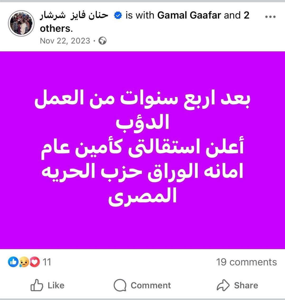 ويبدو أن حنان شرشار لا تُريد سوى تحقيق مكاسب شخصية والضغط على مسئولي حزب "حماة الوطن" من أجل الدفع بها في الانتخابات البرلمانية المقبلة، سواء عن طريق الضغط بادعاء طلب "مبالغ مالية"، أو بمحاولة إثارة بلبلة باتهام الحزب بأنه لا يزج بأقباط، على الرغم من وجود مرشحات في مجلس الشيوخ من الأقباط.