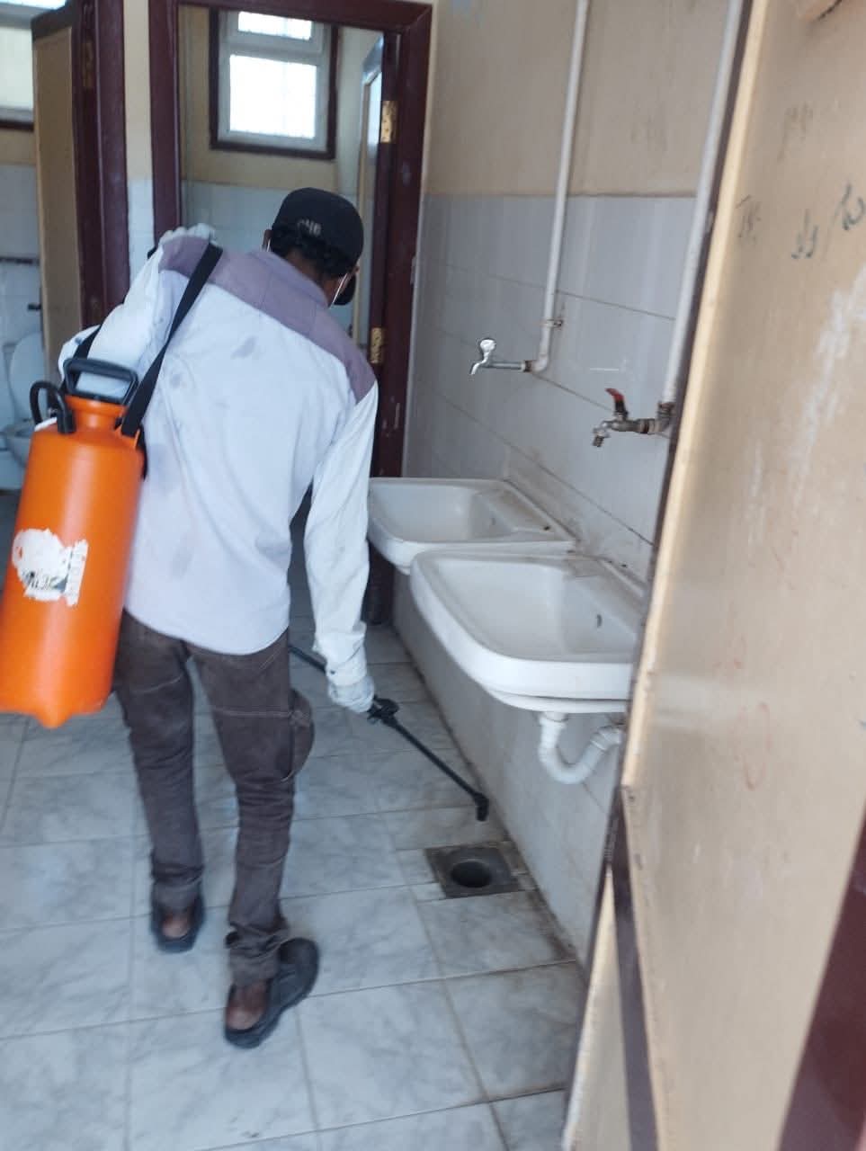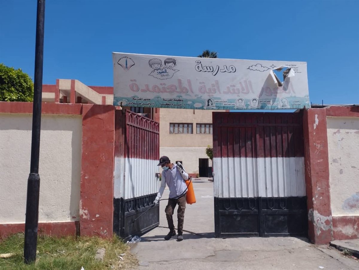 حيث تم الدفع بعربات التعقيم والتطهير المتحركة وأطقم التطهير المحمولة للقيام بالأعمال الوقائية لكافة الفصول والممرات والحوائط من خلال الأطقم الفنية التي تنفذ كافة المهام الموكلة إليها .