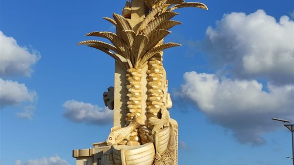 ويتضمن الميدان تمثال ضخم صُمم بدقة ليُعبّر عن الأصالة والتنمية في آنٍ واحد، حيث اجتمعت فيه الرموز الزراعية، الصناعية، التاريخية، الثقافية والبحرية التي تميز المدينة، وهي النخيل الشامخ في قمة التمثال، يرمز إلى الزراعة وخصوبة الأرض، وسنابل القمح والعجلة المسننة تعكسان الترابط بين النشاط الزراعي والصناعي.