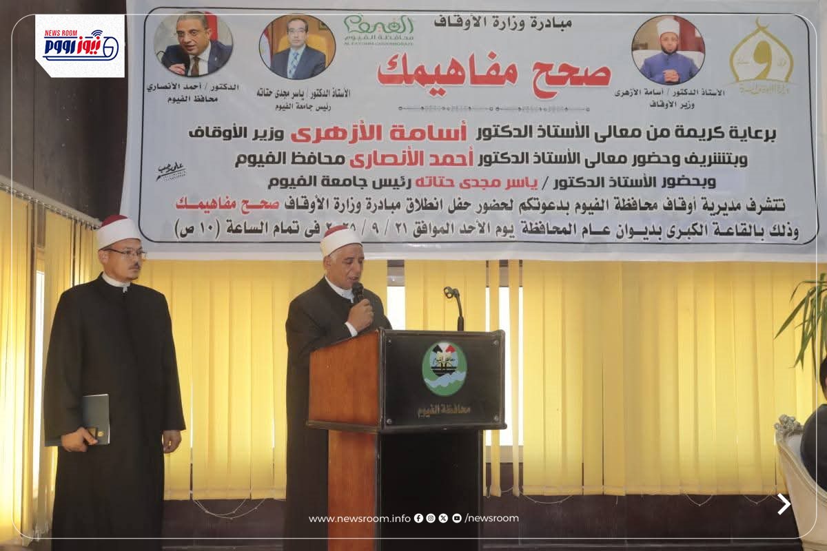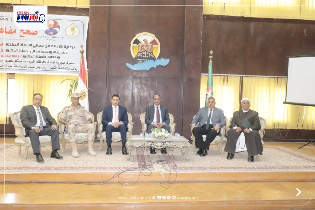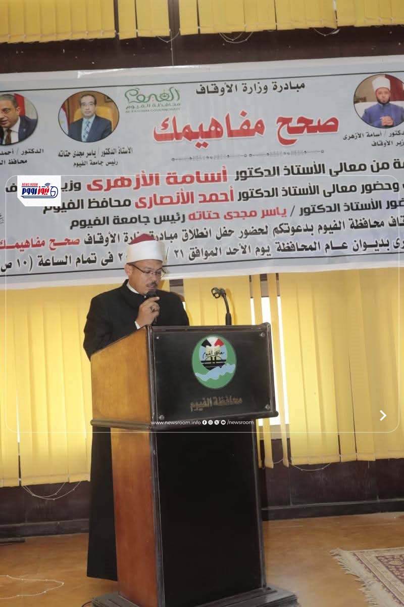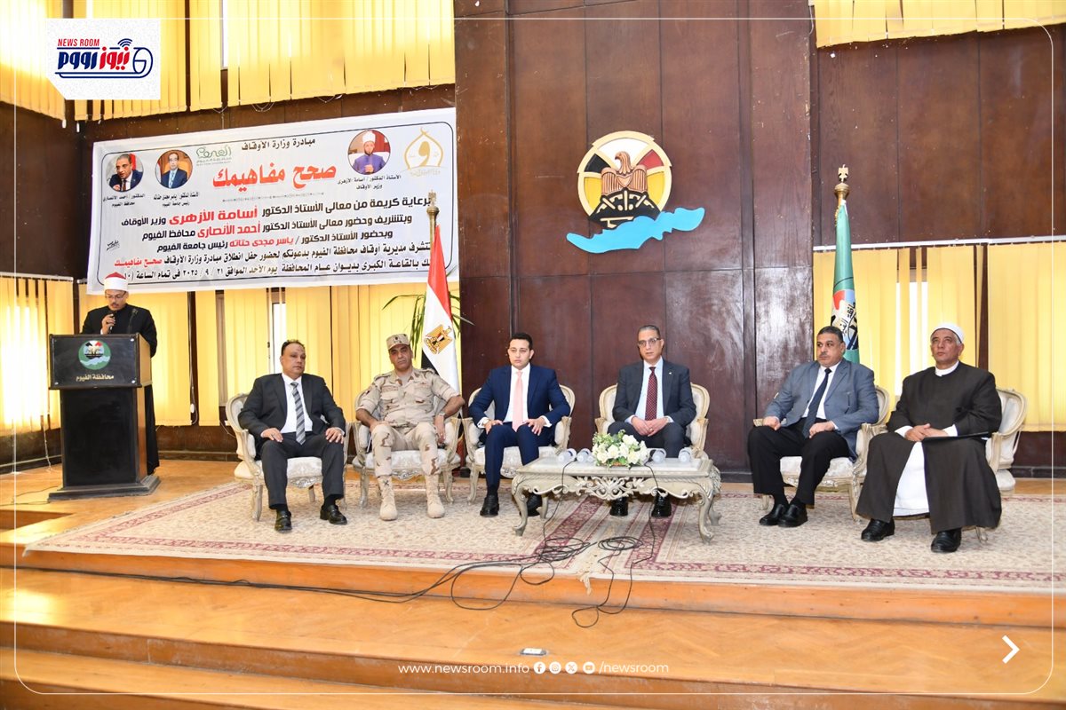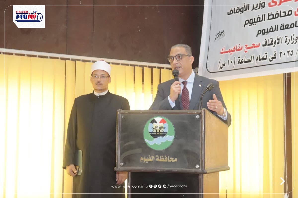 وخلال كلمته، أكد محافظ الفيوم، أهمية المبادرة التي تبنتها القيادة السياسية لنشر الفهم الصحيح للدين، وترسيخ ثقافة الاعتدال والتسامح، وتصحيح المفاهيم المغلوطة، ومواكبة ما يحدث في مصر والعالم، ومعالجة الظواهر السلبية، بالحوار والتوعية بعيداً عن الإقصاء، مثمناً الدور الرائد لوزارة الأوقاف، في بناء وعي رشيد يخدم قضايا المواطن اليومية.
