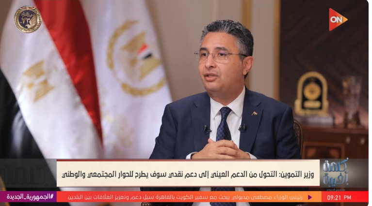 وقال فاروق إن التحول من الدعم العيني إلى الدعم النقدي كان تكليفا من الرئيس عبد الفتاح السيسي، مطمئنا المواطنين إلى أن التحول من الدعم النقدي إلى الدعم العيني لابد أن يطرح على المجتمع أيا كانت صورته، سواء كان الحوار الوطني، البرلمان، الخبراء.