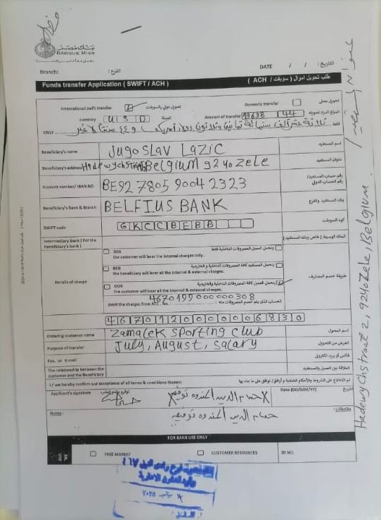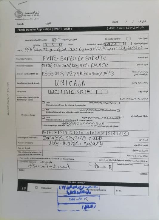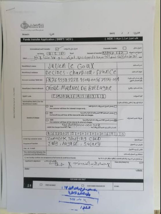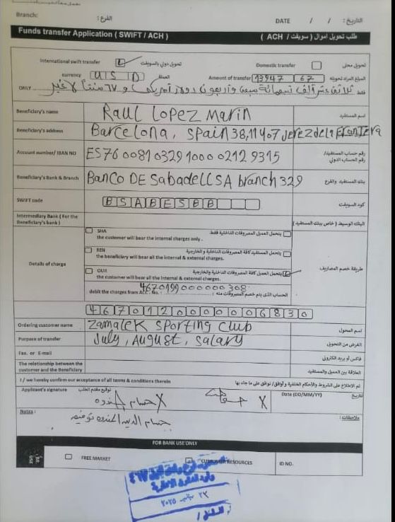 وتضمنت الصور تحويلات مالية لثلاثة من أفراد الجهاز الفني الأجنبي: