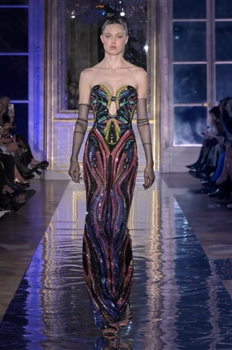 تألقت أنغام بإطلالة ملفتة مرتدية فستانًا ملون مطرز يدويًا، وهو من تصميم اللبناني «زهير مراد» من مجموعة الأزياء الراقية لربيع وصيف 2025، وجاء مطرزًا بالكامل ولامعًا بألوان استوائية جذابة.