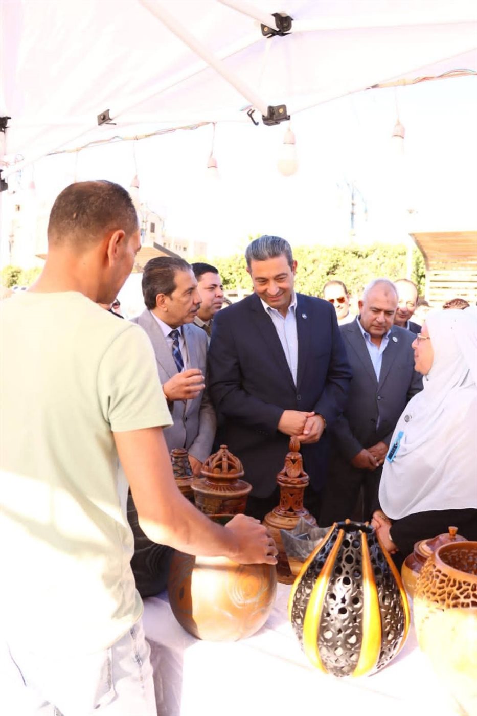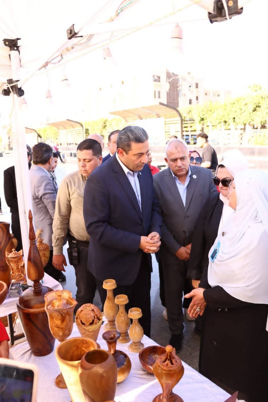 منتجات دمياطية وقناوية.. محافظ دمياط يتفقد معرض "أيادي مصر" للحرف اليدوية