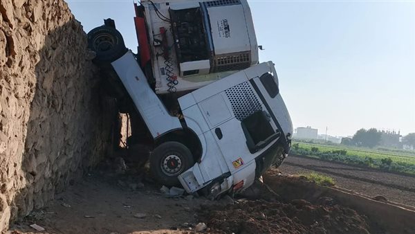 إنقاذ السائق بأعجوبة.. انقلاب سيارة نقل أعلى الطريق الإقليمي بالمنوفية