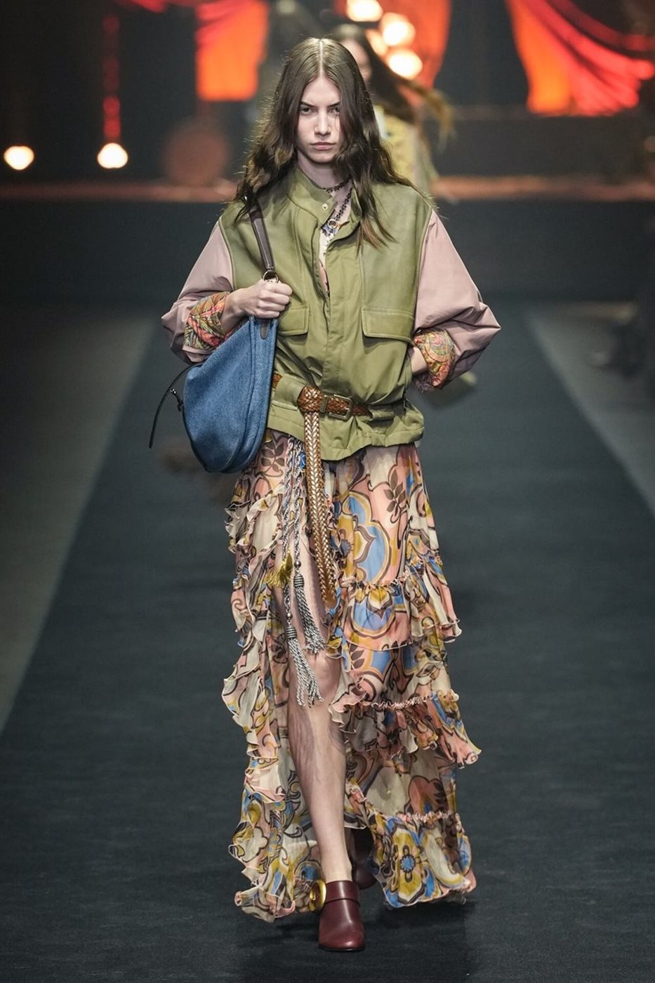 بينما عززت الإكسسوارات هذا الأسلوب الشاعري؛ حيث برزت قبعات على طراز القراصنة، وعصابات رأس مزخرفة، وسترات دراجات نارية مهدبة، ولمسة من جلود الحيوانات، منحت الإطلالات تأثيراً برياً أسطورياً، كان خالداً في إطلالات إيترو على مر التاريخ.
