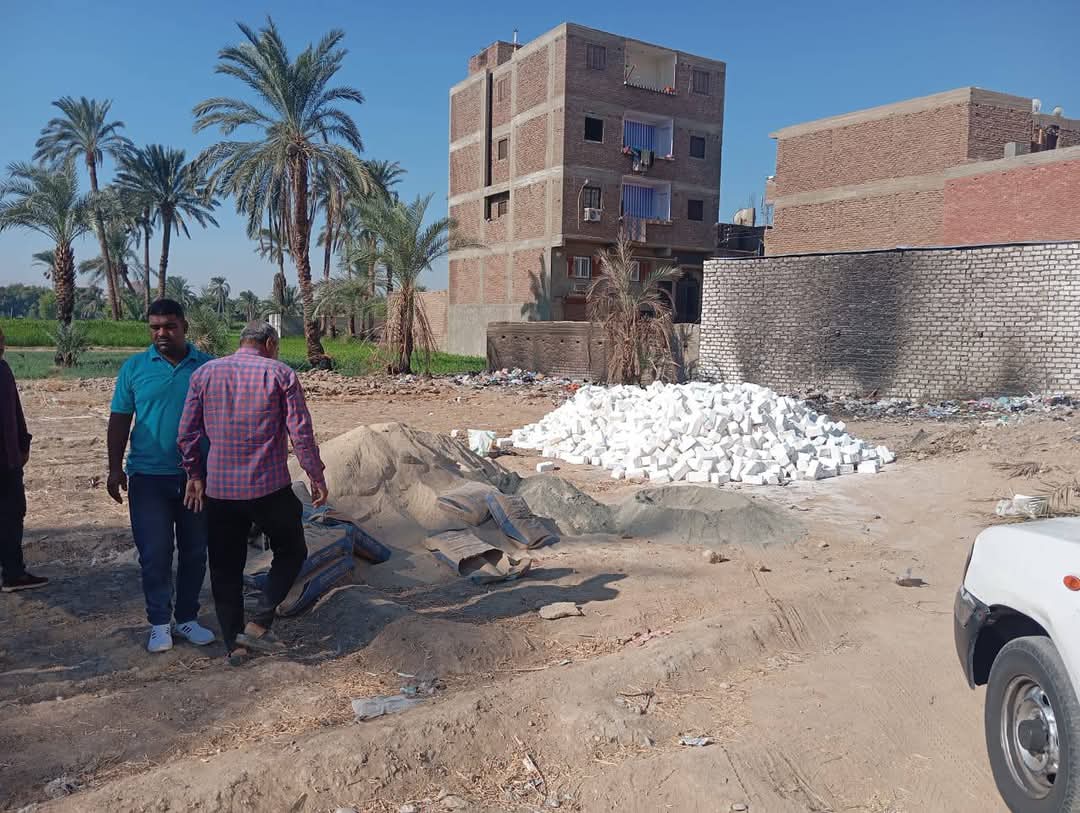 على مساحة 350 مترا.. إيقاف أعمال بناء مخالف على أرض زراعية بقنا (صور)