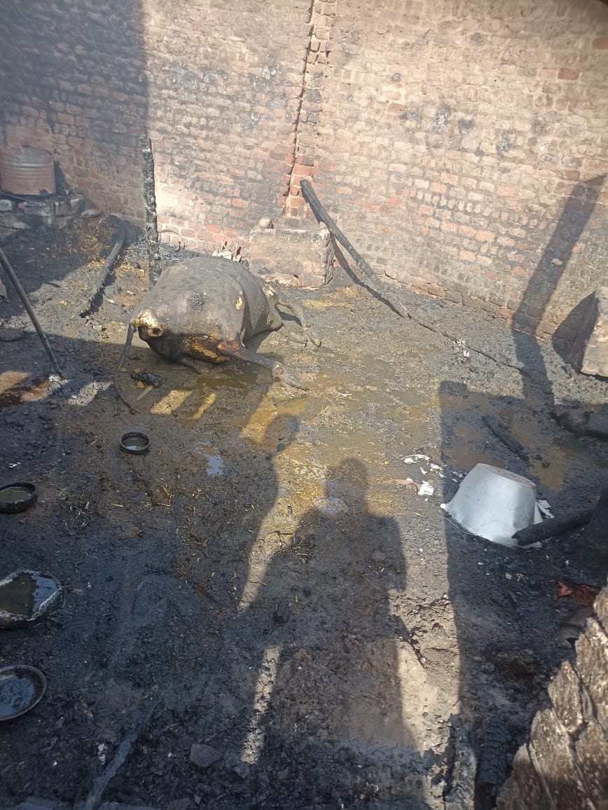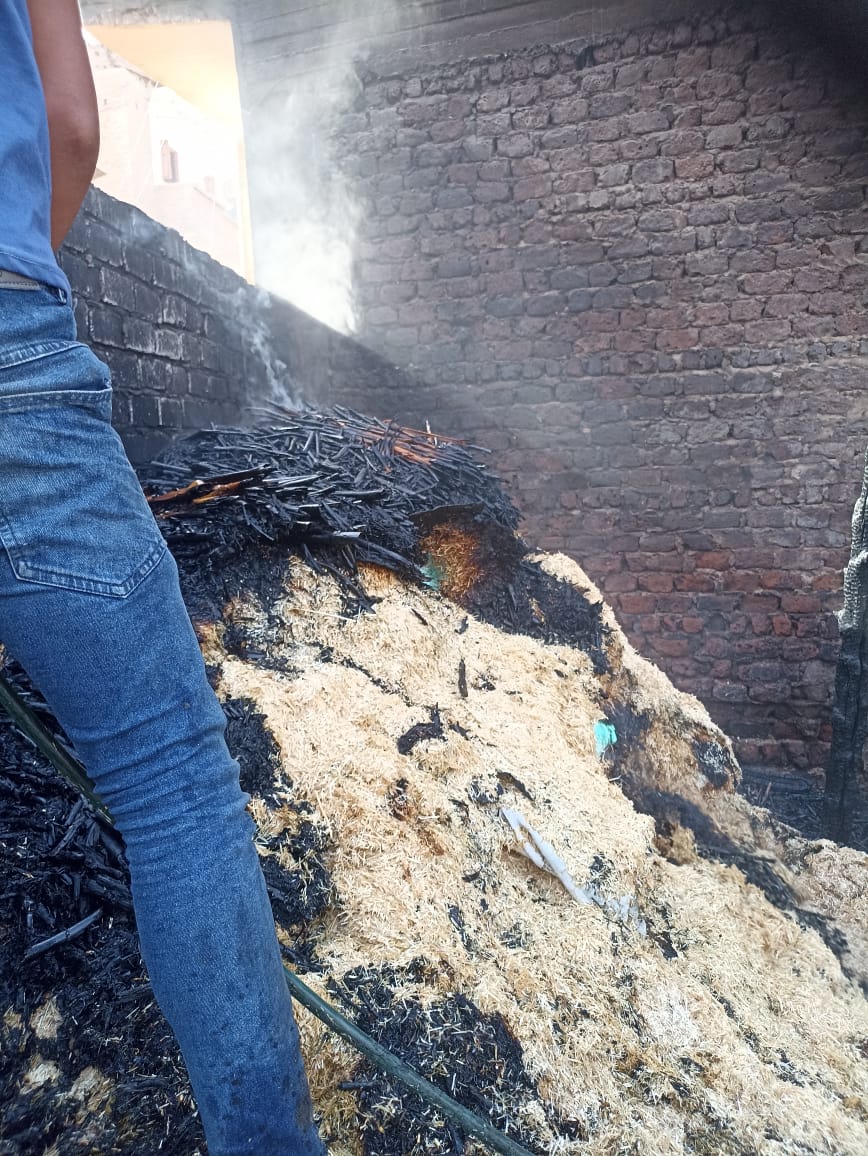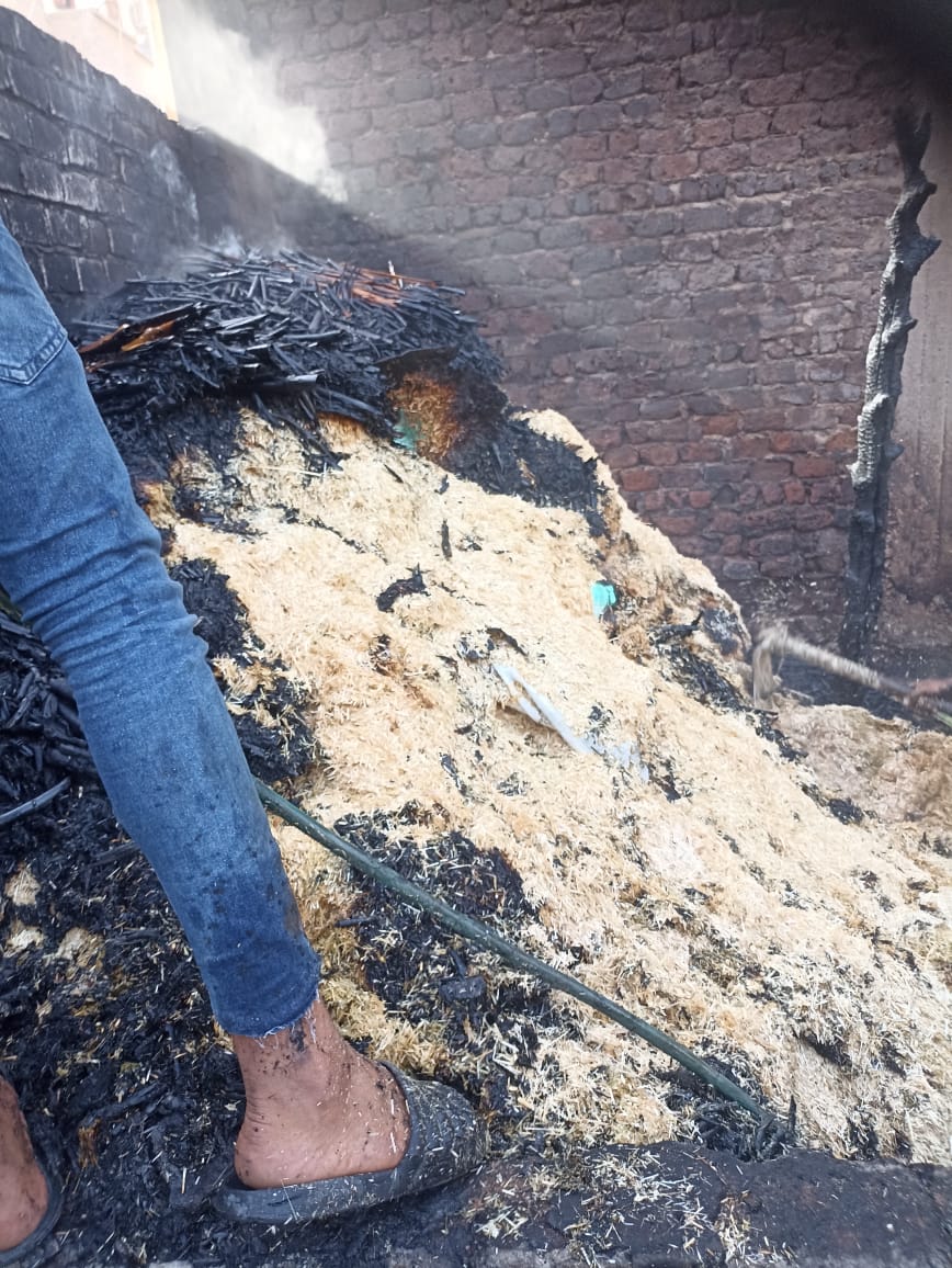 تمثلت التلفيات في نفوق رأسين ماشية، واحتراق كمية من جذوع النخيل والبوص والتبن، وتم تحرير المحضر اللازم بالواقعة، وتولت النيابة العامة التحقيقات.