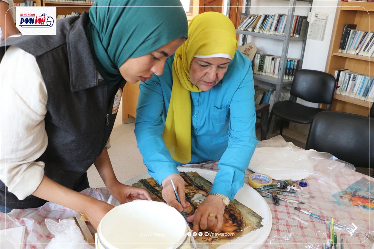 كما تواصلت فعاليات الورش الفنية والحرفية للملتقى، حيث شهدت مكتبة الطفل والشباب بطامية ورشة "الديكوباج" بقيادة الفنانة مها محب، التي قدمت شرحًا لتاريخ هذا الفن الذي كان يُعرف قديمًا باسم "فن الفقراء"، وأتاح للطلاب تنفيذ ما يقرب من 20 قطعة فنية متنوعة تضمنت لوحات ومجسمات وجدارية كبيرة عن التراث.