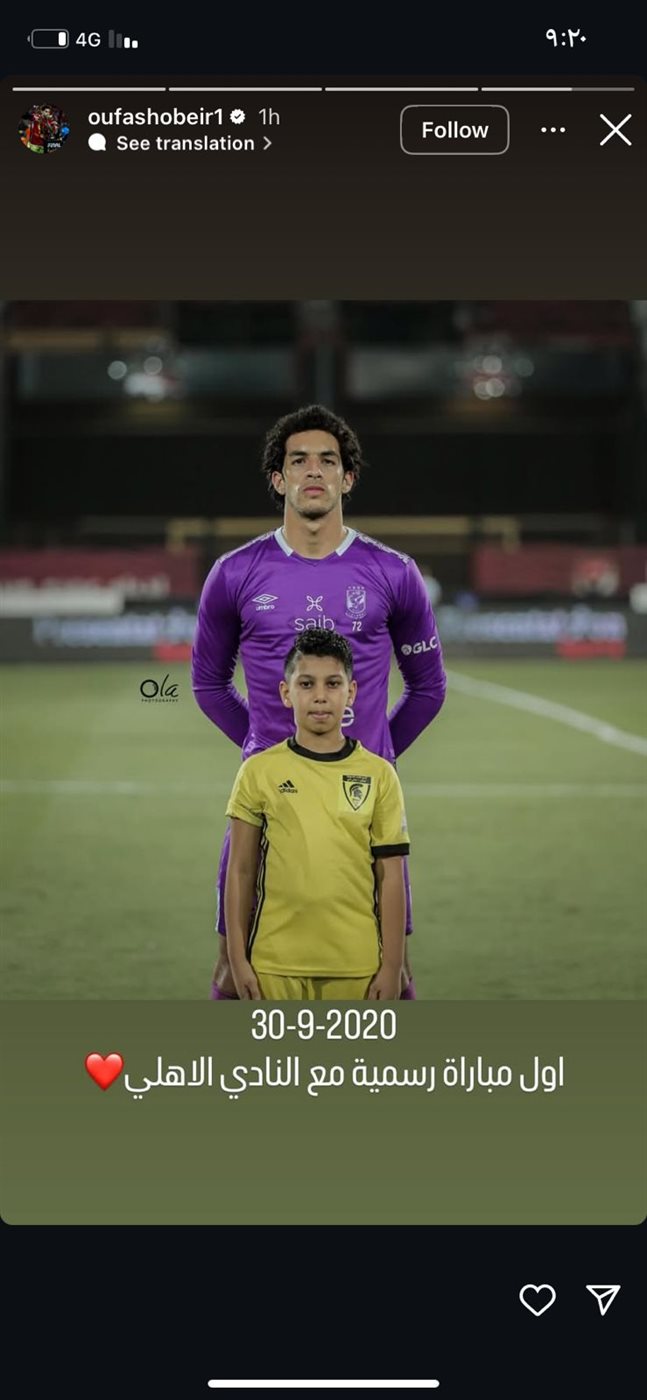 ونشر شوبير، صورة عبر حسابه على انستجرام لـ أول مباراة رسمية مع النادي الأهلي في 30 سبتمبر 2020.