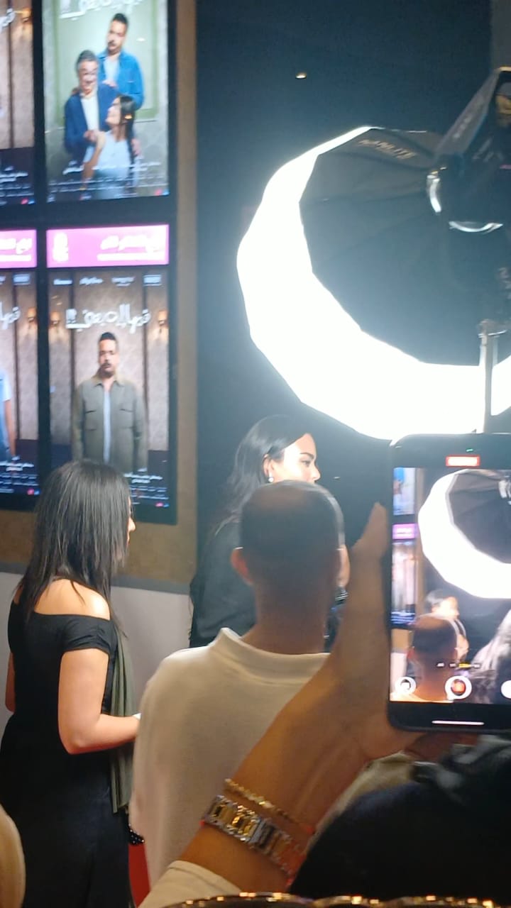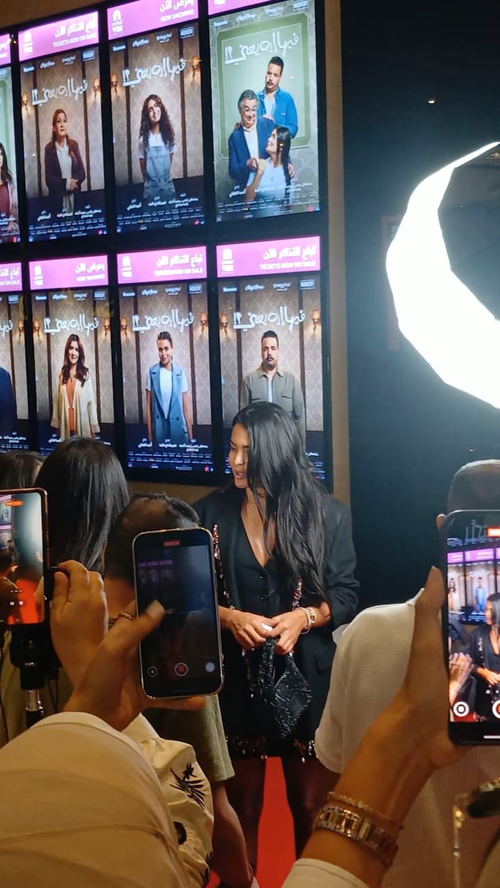 ولفتت أسماء جلال الأنظار بإطلالتها الأنيقة، حيث حرص الجمهور على استقبالها بحفاوة والتقاط الصور معها، خاصة أنها تُعد إحدى بطلات الفيلم، وتخوض من خلاله تجربة جديدة في إطار الكوميديا الاجتماعية.