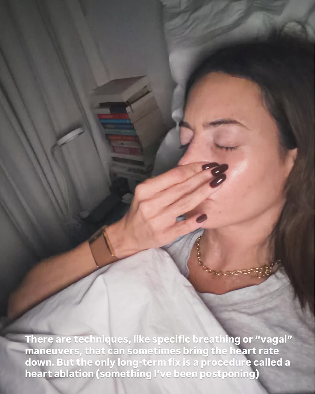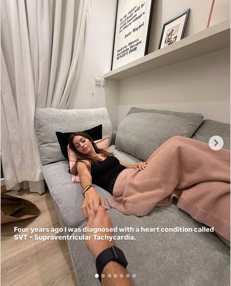 وفي كل صورة، شرحت وازن تفاصيل تجربتها مع الحالة، مشيرة إلى اللحظة التي اكتشفت فيها إصابتها، فقالت: "منذ أربع سنوات، تم تشخيصي بحالة قلبية تُعرف باسم تسارع ضربات القلب فوق البطيني (SVT). وهي حالة غير مهددة للحياة، لكنها تؤدي إلى تسارع مفاجئ في نبض القلب يتجاوز المعدل الطبيعي بشكل كبير".