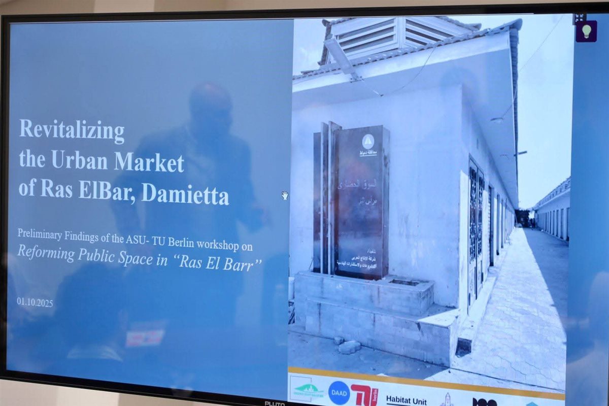 وجاء اللقاء بحضور الأستاذ الدكتور عمرو حنفى مستشار محافظ دمياط لنظم المعلومات المكانية والمتحدث الرسمي للمحافظة، حيث يأتى فى إطار عمل الفريق لإعداد دراسة لتطوير منطقة السوق الحضارى بكورنيش النيل بمدينة رأس البر، وذلك فى إطار مادة التخطيط والتصميم العملى PDP لجامعة عين شمس و برنامج ماجستير العمران المتكامل والتصميم المستدام لجامعة برلين التقنية قسم العمران الدولى والتصميم من خلال مشروع " نحو مدن مصرية خضراء " الممول من الهيئة الألمانية للتبادل الأكاديمي DAAD.