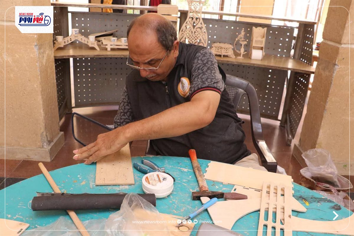 وتواصلت الفعاليات مع ورشة فن الأركت، أوضح خلالها المدرب أيمن السعدني أن هذا الفن يقوم على تشكيل الخشب بعدة تقنيات باستخدام أدوات يدوية مثل المنشار والصنفرة والغراء، مضيفا أنه يعتمد على بقايا الأخشاب، ما يجعله أقل تكلفة.
