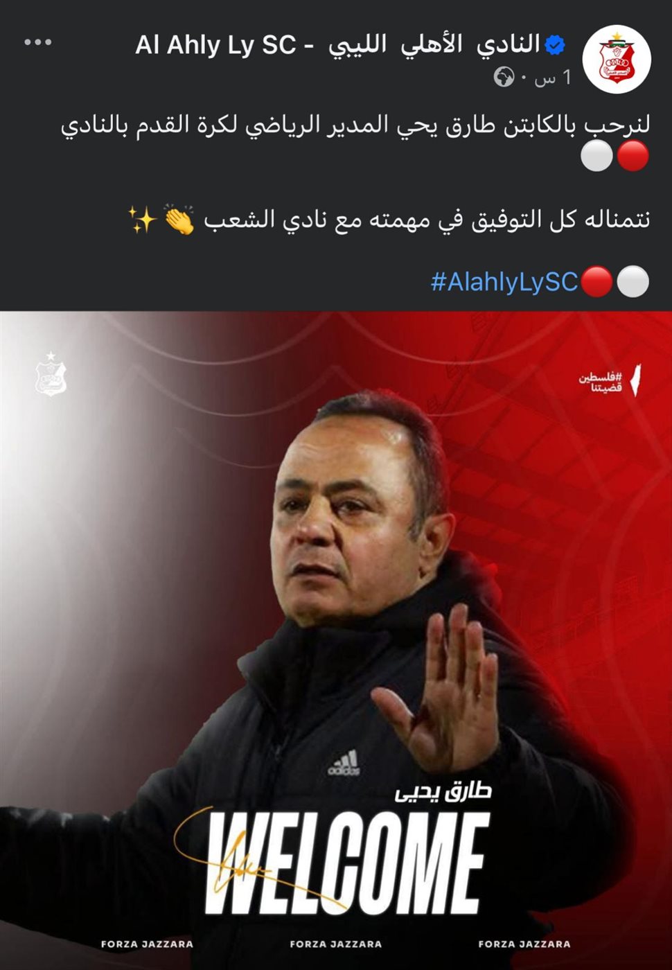 ونشرت الصفحة الرسمية لنادي أهلي بني غازي على موقع التواصل الاجتماعي فيس بوك صورة طارق يحيى وعلقت عليها قائلة: لنرحب بالكابتن طارق يحيى المدير الرياضي لكرة القدم بالنادي.