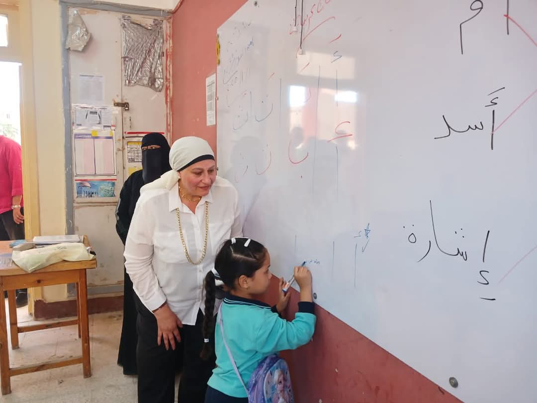تفقدت الفصول الدراسية وتابعت انتظام الشرح داخل الحصص واطمأنت على تسليم الكتب وتوزيع الجداول ونظافة الفصول كما لاحظت تفاعل الطلاب داخل الصف ووجهت بأهمية تنمية المهارات الأساسية في القراءة والكتابة والاهتمام بالأنشطة التربوية