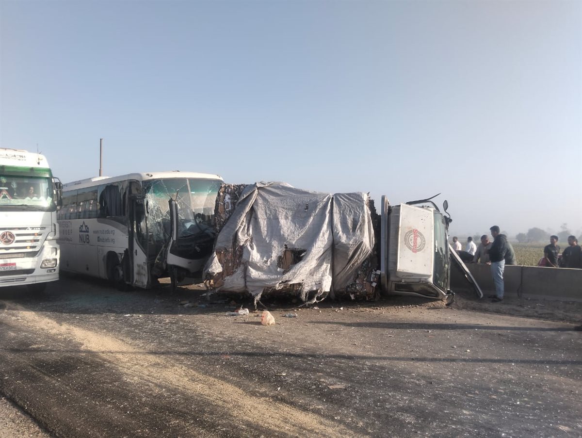 فيما أصدرت جامعة النهضة بيان جاء فيه أنه صباح اليوم تعرض أتوبيس يقل عددًا من الطلاب لحادث تصادم بطريق دمو – بني سويف مع سيارتين (نقل وملاكي)، وقد تم نقلهم فورًا لإجراء الفحوصات الطبية اللازمة والاطمئنان الكامل على حالتهم الصحية.
