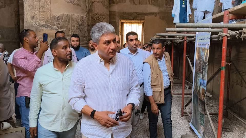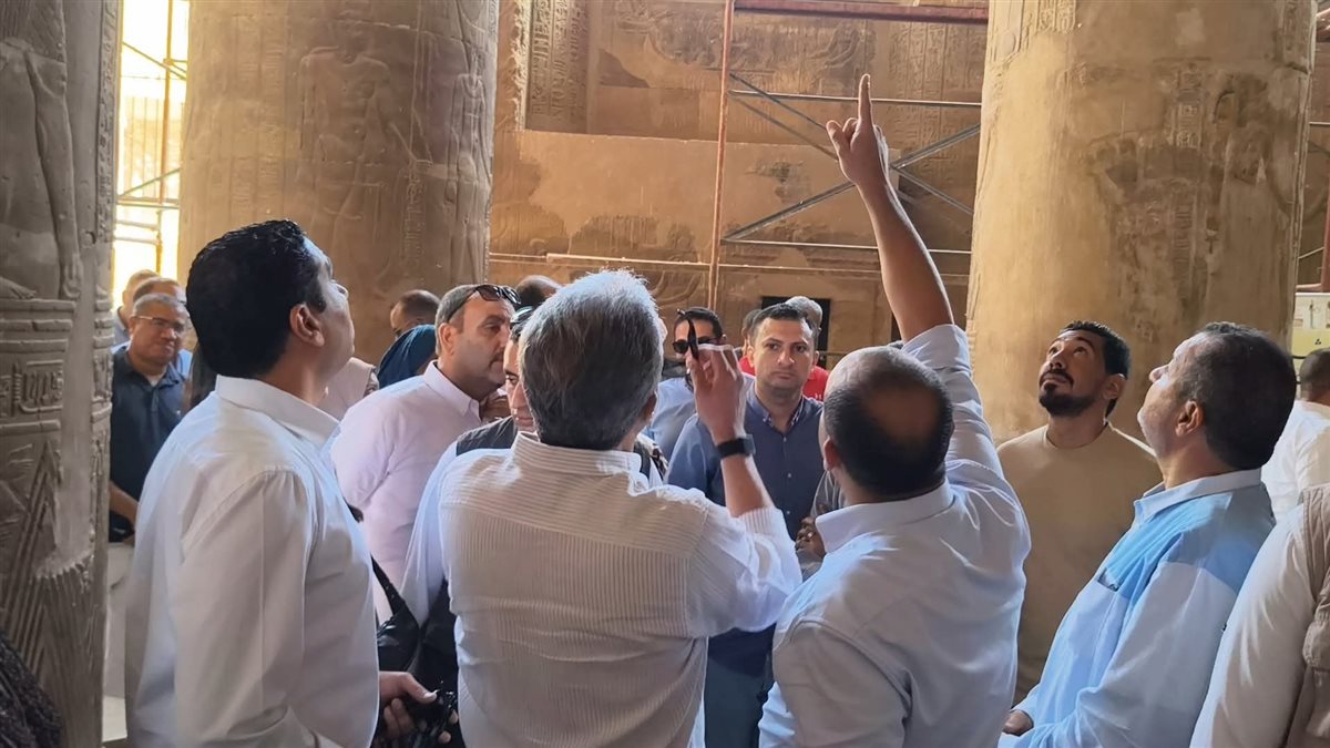 في مشهد لافت يجسد الاهتمام الرسمي بالتراث المصري، صعد الدكتور شريف فتحي وزير السياحة والآثار صباح اليوم الجمعة إلى السقالة الخاصة بأعمال الترميم بمعبد إسنا جنوب الأقصر، ليتابع بنفسه عن قرب جهود المرممين المصريين في إعادة إحياء النقوش والجداريات الفريدة داخل المعبد.