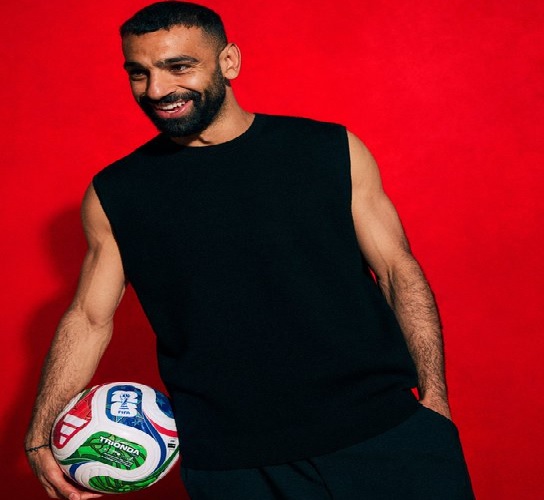 وظهر محمد صلاح في جلسة تصوير حصرية وهو يحمل كرة "تريوندا"، مؤكداً مكانته بين عمالقة اللعبة.