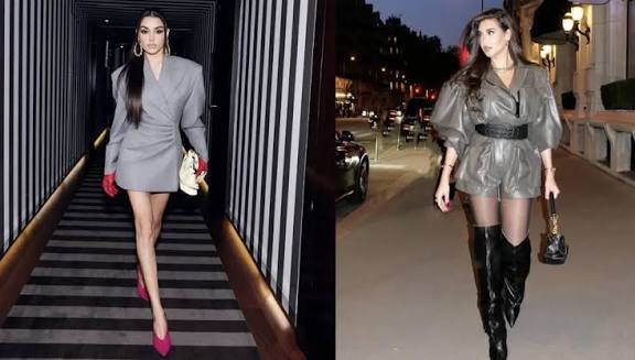 اختارت ياسمين صبري أسلوبًا أكثر هدوءًا ونعومة، لكنه لم يقل أناقة عن هاندا. أطلّت النجمة المصرية بزي جلدي أسود بالكامل من Balmain، بتصميم بسيط في خطوطه وغني في تفاصيله التي أبرزت شخصية ياسمين الأنيقة.