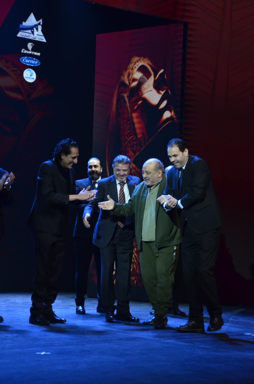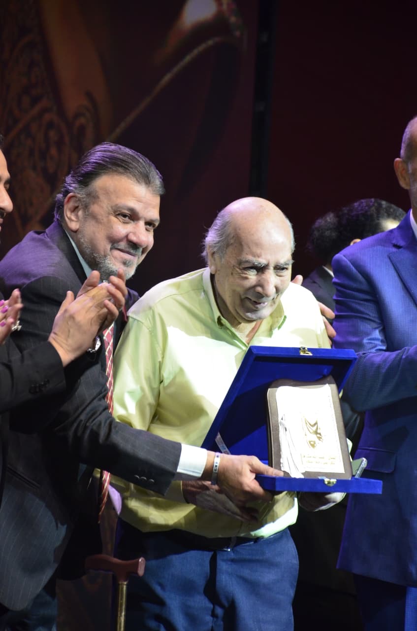 بعد ذلك صعد أعضاء مجلس نقابة المهن التمثيلية بالكامل إلى المسرح ليشاركوا في تقديم دروع التكريم، لثلاثة من كبار النجوم هم الفنان صبري عبد المنعم الذي دخل إلى المسرح على كرسي متحرك ونال الكثير من التصفيق، وكلمات المحبة،