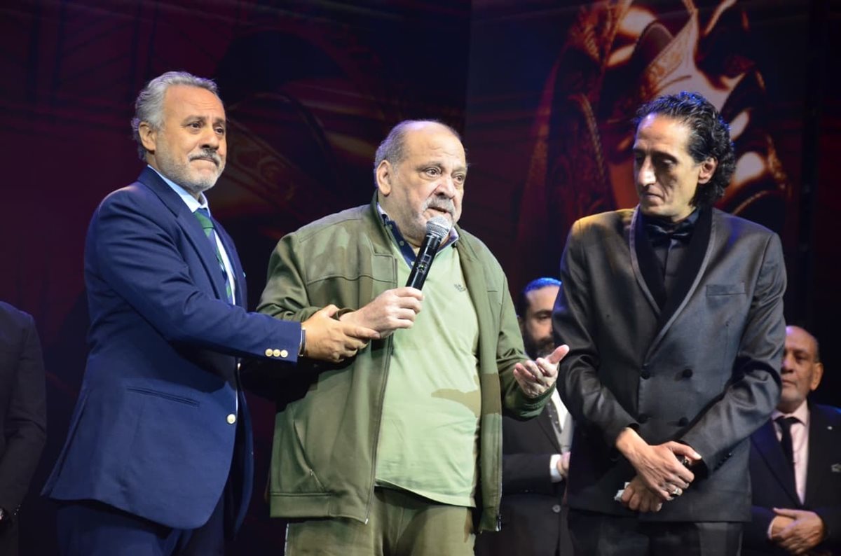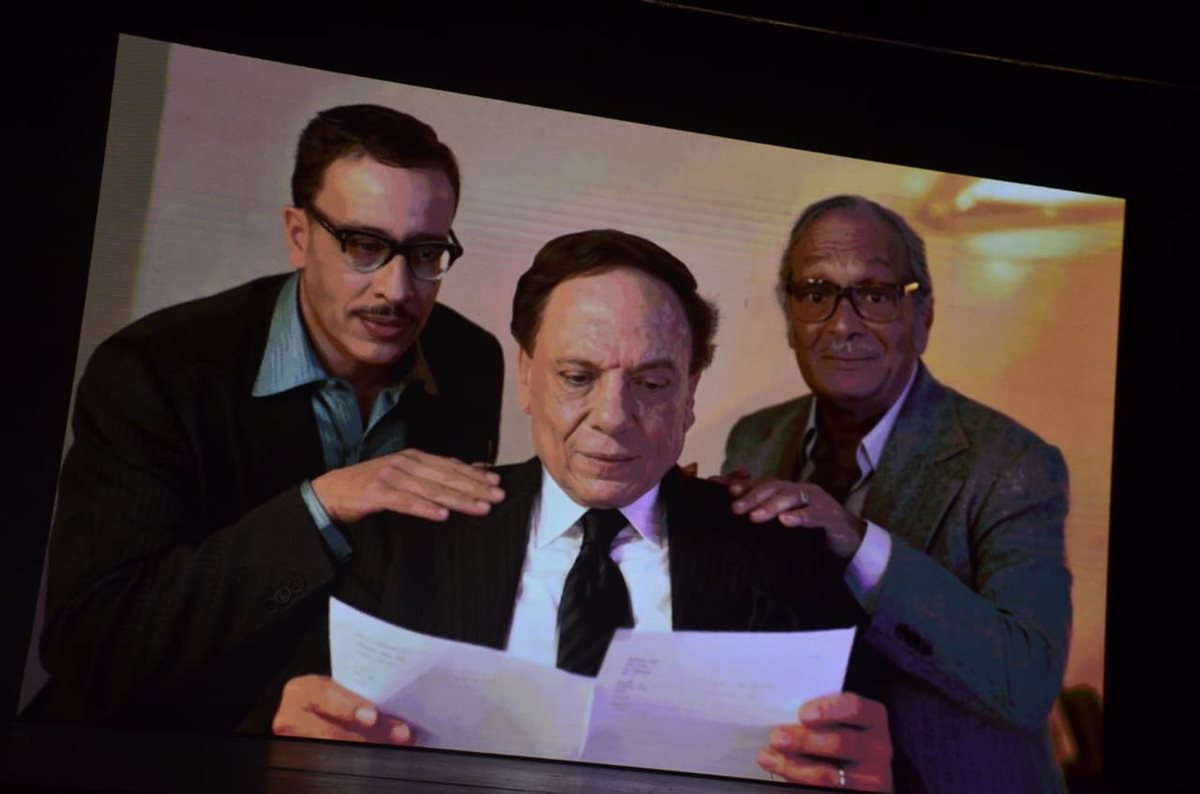 في فقرته الأخيرة تحول مسرح "جراند نايل تاور"، الذي شهد حفل افتتاح الدورة الثامنة لمهرجان نقابة المهن التمثيلية برئاسة دالدكتور أشرف زكي إلي مظاهرة حب وتكريم لنجوم ورموز المسرح المصري، من يعقوب صنوع إلي سمير غانم ومحمد صبحي وعادل إمام من خلال أغنية "حكاية مسرح " التي قدمت ثلاث مرات متتالية، الأولى عبر الشاشة كـ"كليب" مصنوع بالذكاء الصناعي .