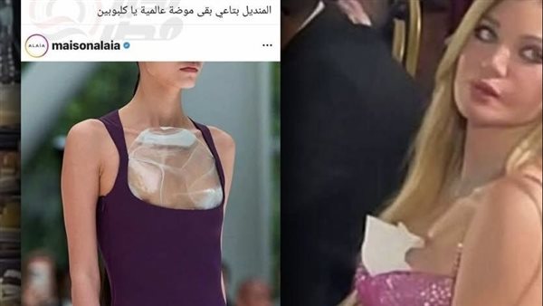 واستدلت بعارضة أزياء تضع قماشة بلاستيكية على منطقة الصدر خلال عرض أزياء Maison Alaia.