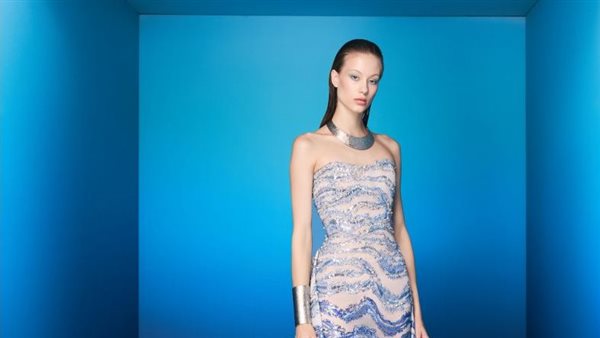 وقد أعجبنا فستان حورية البحر المطرز بالشعب المرجانية، وهو مطرز بتدرج لوني مذهل من الأزرق السماوي إلى الأرجواني الداكن وهو مُرصّع بأحجار كريستالية مُركّزة على الأزرق الفاتح، بينما يُضفي شق عميق انسيابية على الحركة وتم تنسيق تنورة خلفية تمتد كذيل طويل مبطن بالكريب الساتاني الأزرق الداكن الذي يذكرنا بعمق المحيط.