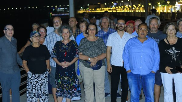 فوج سياحي ألماني يجري جولة على ممشى كورنيش بني سويف أثناء رحلتهم النيلية