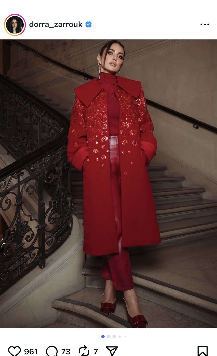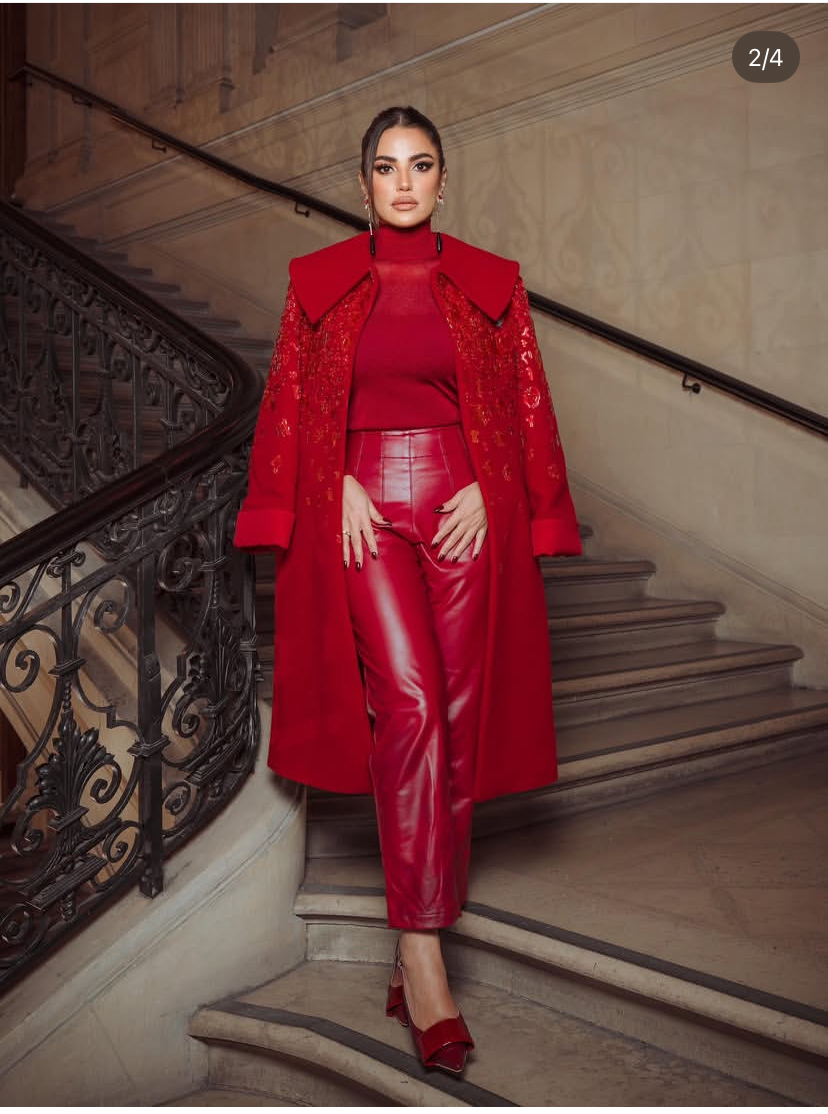 وخطفت درة الأنظار بأطلالة شتوية جذابة ،مرتدية جاكيت طويل باللون الأحمر نسقت معة بنطلون جلد بنفس اللون من توقيع جورج حبيقة، مما حازت الصورة علي إعجاب متابعيها.