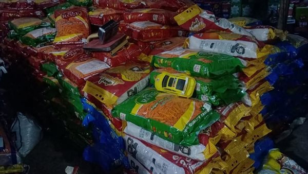 ضبط أكثر من نصف طن مقرمشات وعدد 500 علبة سجائر مجهولة المصدر ببنى سويف