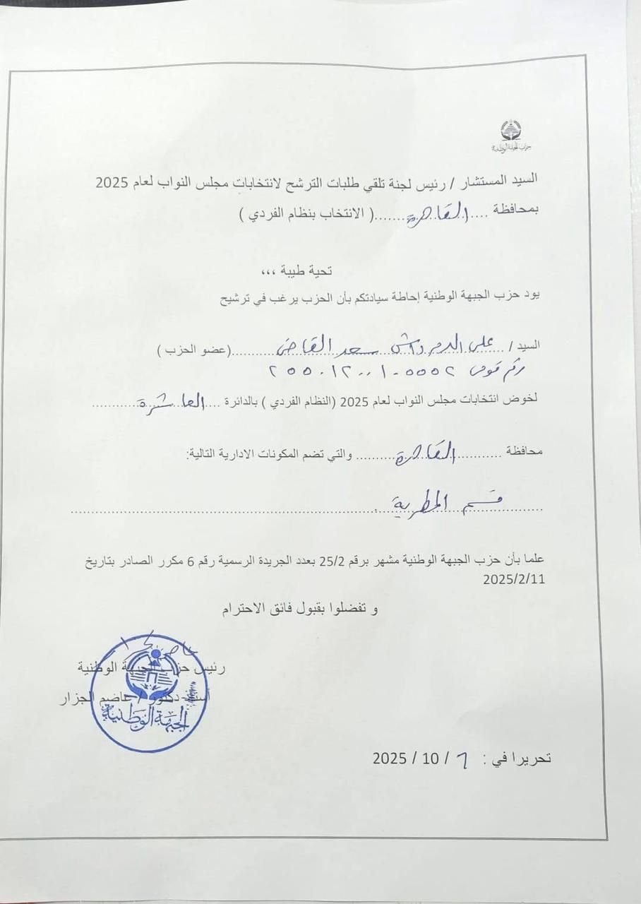 أكدت مصادر أن حزب الجبهة الوطنية دفع بمدير أمن القاهرة السابق علي الدمرداش سعد القاضي على مقعد المطرية في انتخابات مجلس النواب 2025، وأطاح رسميًا بعضو الأمانة المركزية عاطف مخاليف.