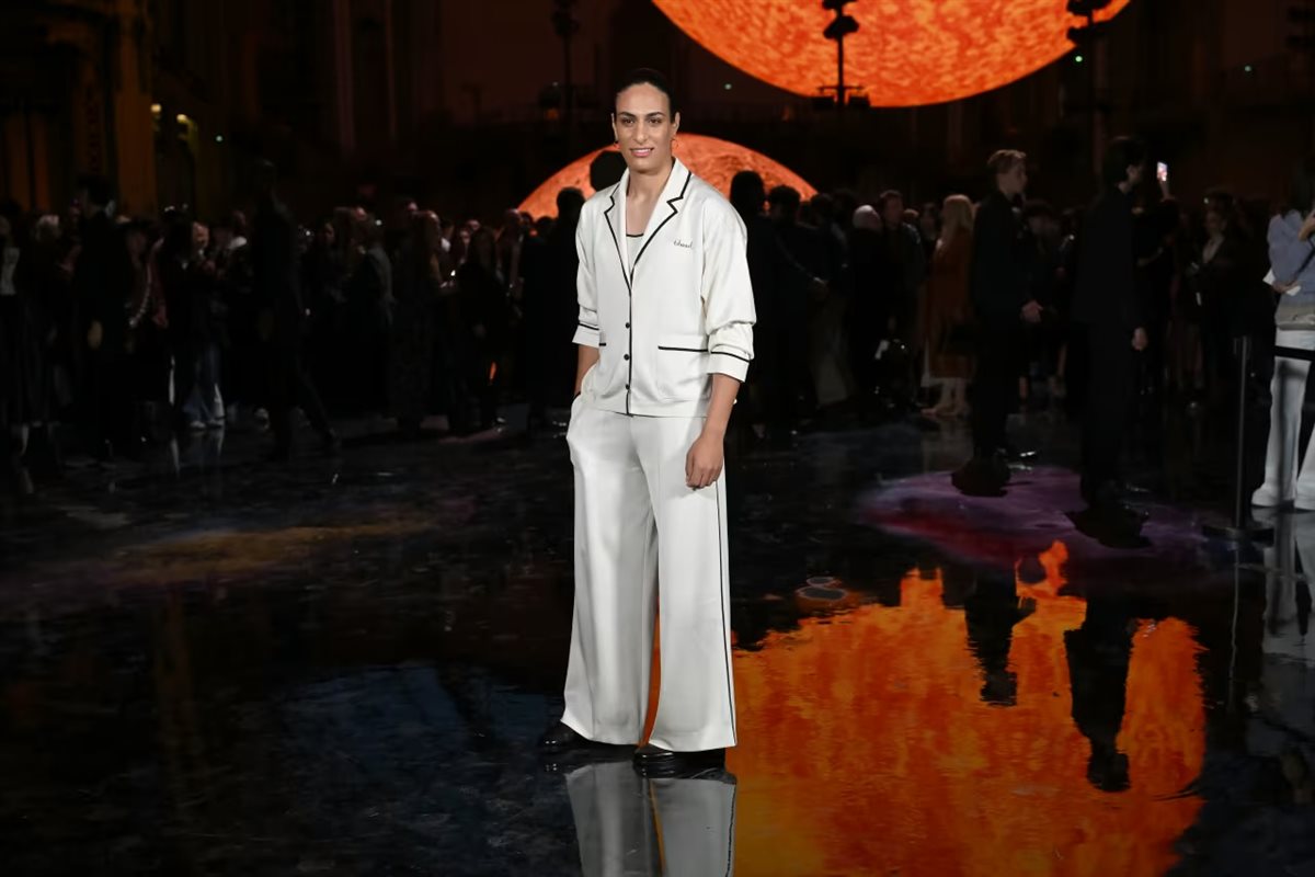 حضرت الممثلة الإسبانية بينيلوبي كروز مرتدية جاكيت جلد أسود مزخرف بياقة من الفرو مع سروال بيج، بينما ظهرت بطلة الملاكمة الجزائرية إيمان خليف بزي مونوكروم أبيض اللون.