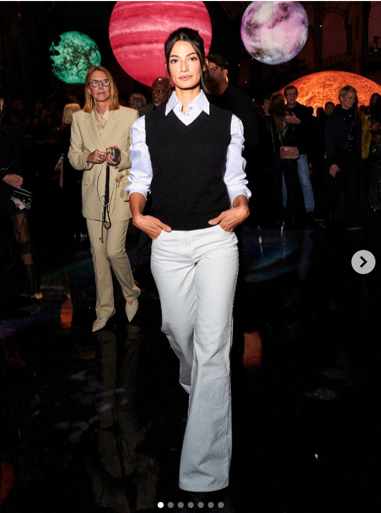 لم يكن المشهد مجرد عرض جديد، بل كان أشبه بنظام شمسي كامل، مع كواكب مضيئة معلّقة في الأعلى وأخرى على الأرض، تزيّن الأرضية السوداء اللامعة. على عكس كارل لاغرفيلد المعروف بأسلوبه الملفت وتسريحته البيضاء وربطة عنقه السوداء، يظهر بليزي بأسلوب هادئ وبسيط عبارة عن جينز وتيشيرت، لكن حضوره يظل مؤثرًا.
