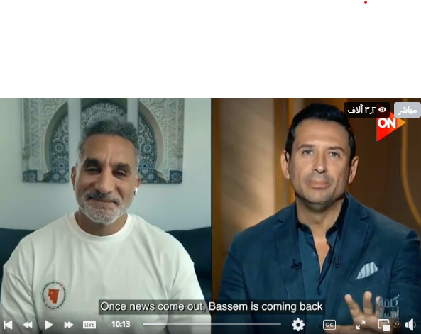 ويأتي هذا الظهور في إطار حوار خاص ومختلف، يتناول فيه يوسف رحلته منذ خروجه من مصر وحتى استقراره في الولايات المتحدة، مقدّمًا رؤيته للأحداث بجرأته وصدقه المعتادين.