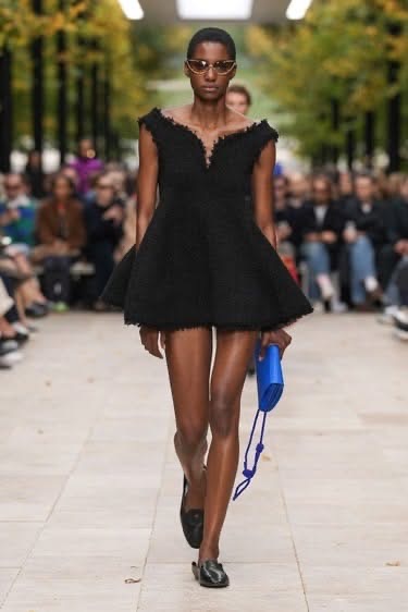 اللافت أنّ رايدر لا يكتفي بالتوازن بين الذكورة والأنوثة، بل يجرؤ على إدخال جرعات من اللعب في خضم هذا البناء الدقيق. فإلى جانب البذلات الصارمة، رأينا فساتين قصيرة بملمس البوكليه أو مزدانة بطبعات زهرية، تحمل الثقة نفسها التي يفرضها معطف طويل. أما التفاصيل الأكثر إثارة للنقشاش، فجاءت في صورة خوذات دراجات هوائية ممهورة بشعار سيلين، إكسسوار غير متوقّع يلتقط يوميات الباريسيين. هذا التفصيل بدا معاصراً أكثر منه ساخراً، وكأنه يردم الفجوة بين الرفاهية والاستخدام العملي.