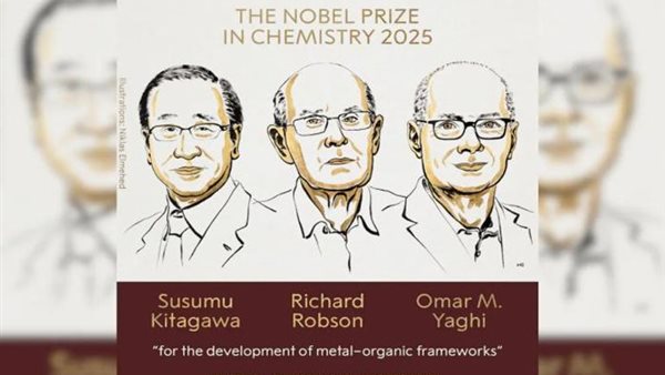 أعلنت الأكاديمية الملكية السويدية للعلوم اليوم، عن فوز الأردني من أصل فلسطيني عمر ياغي الباحث بجامعة كاليفورنيا في الولايات المتحدة الأمريكية، والبريطاني ريتشارد روبسون الباحث بجامعة ملبورن في أستراليا، والياباني سوسومو كيتاجاوا الباحث بجامعة كيوتو في اليابان بـ جائزة نوبل للكيمياء لعام 2025، لتطويرهم أطرًا معدنية عضوية ونجاحهم في إنشاء هياكل جزيئية يمكن استخدامها في استخلاص المياه من الهواء.