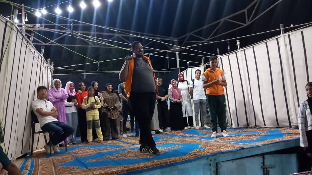 حيث تم تنفيذ جلسة مسرح بعنوان "الكرسى" مقدم من فريق نواة السويس المسرحى، بمركز شباب عرب المعمل ، الذى يتناول بعض القضايا المجتمعية.