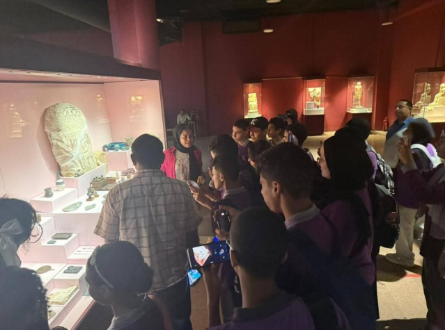 كما نظم القسم التعليمي وفريق عمل المتحف جولة إرشادية متخصصة داخل قاعات العرض، تم خلالها تسليط الضوء على اهتمام المصري القديم بالصحة الجسدية والنفسية، وإبراز مظاهر العناية بالإنسان في الفكر المصري القديم، بما يجسد امتداد مفهوم الصحة الشاملة عبر العصور.