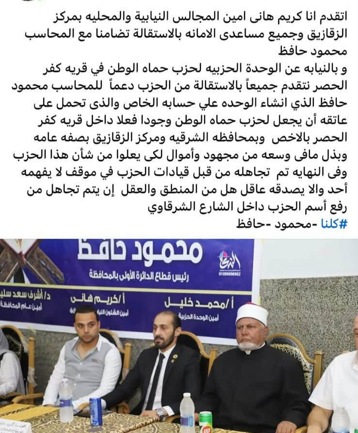 حماة وطن بالشرقية على صفيح ساخن.. استقالات جماعية وحالة غضب تفاصيل أزمة الحزب