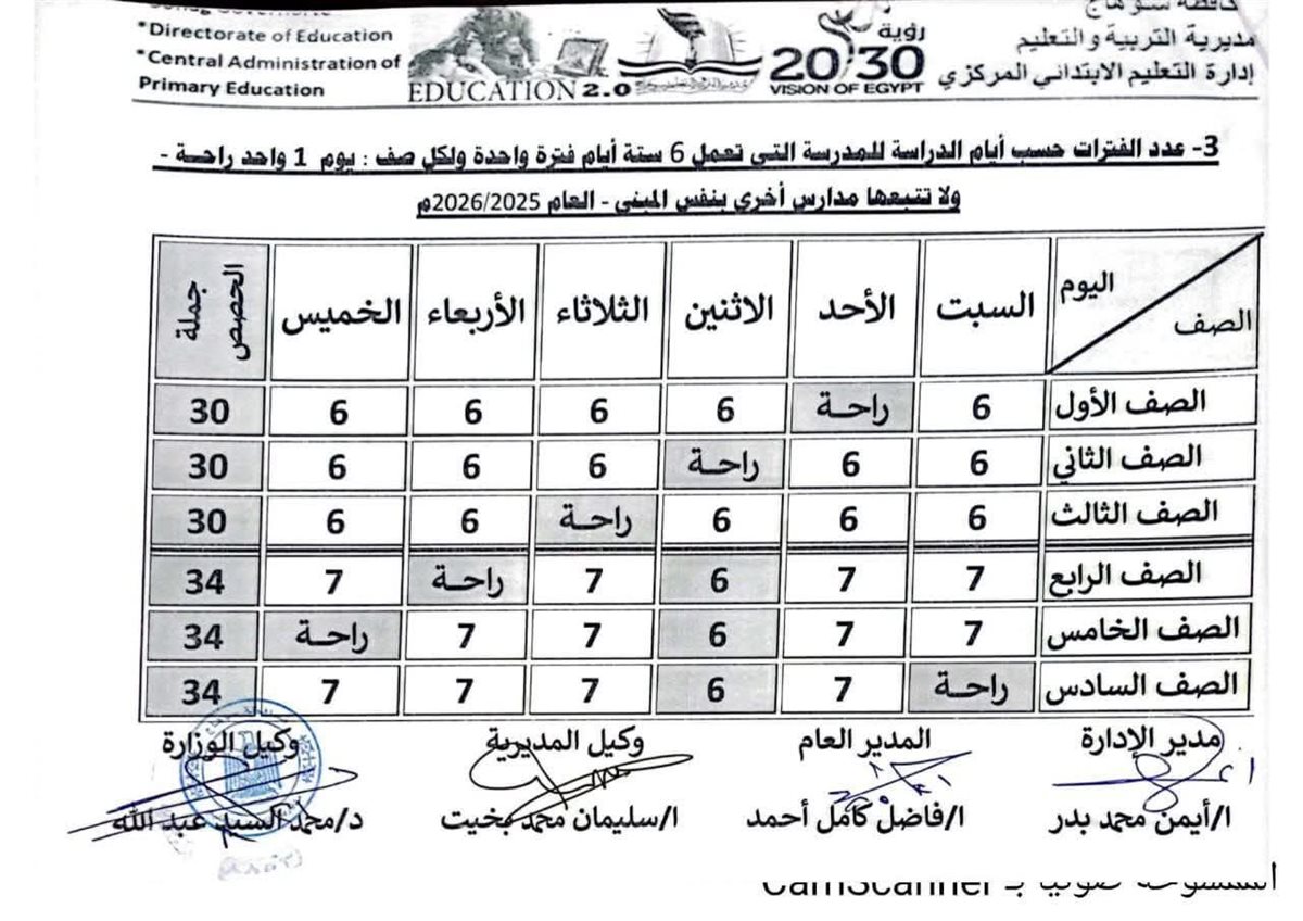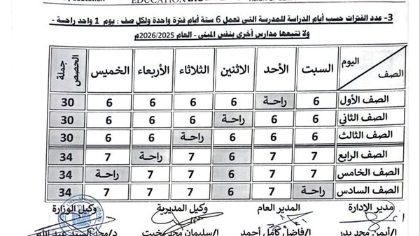 وأكدت مديرية التربية والتعليم أن هذا التنظيم يأتي ضمن خطة توزيع أيام الحضور والراحة بما يحقق الانضباط داخل المدارس، ويتيح الفرصة لاستخدام الفصول بأفضل صورة ممكنة، خاصة في المدارس ذات الكثافات الطلابية العالية.