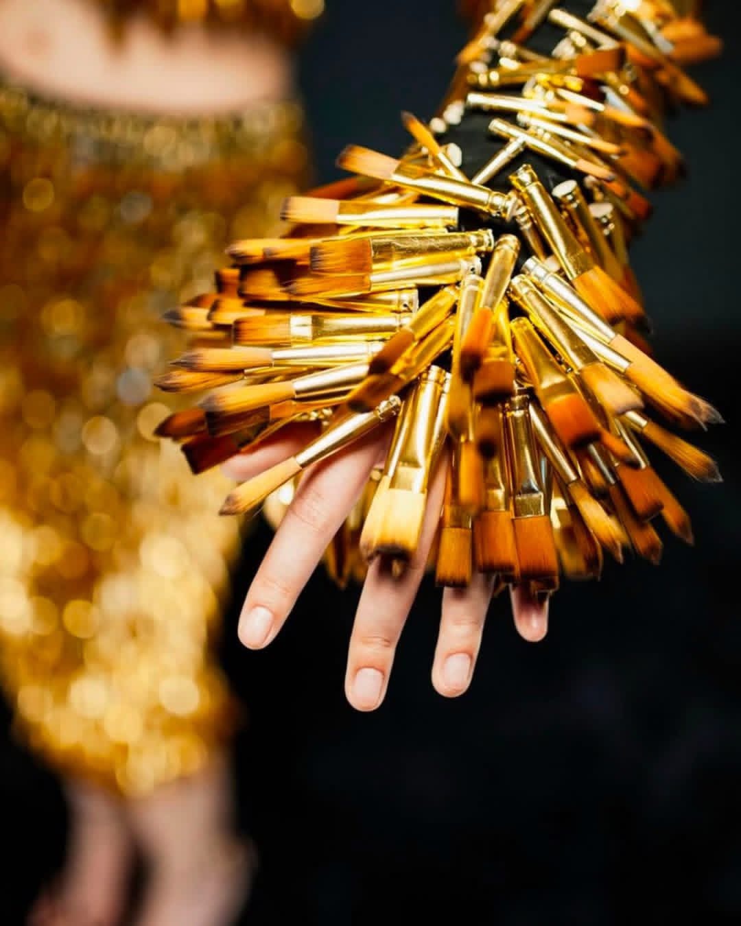 من عرض Schiaparelli SS26 إبداع يفوق الخيال! بدلة مذهلة من توقيع دانيال روزبيري، مصنوعة بالكامل من 6000 فرشاة طلاء فهي قطعة فنية تجمع بين الجرأة والابتكار وتُجسّد روح الدار التي تمزج الفن بالموضة بطريقة لا مثيل لها.