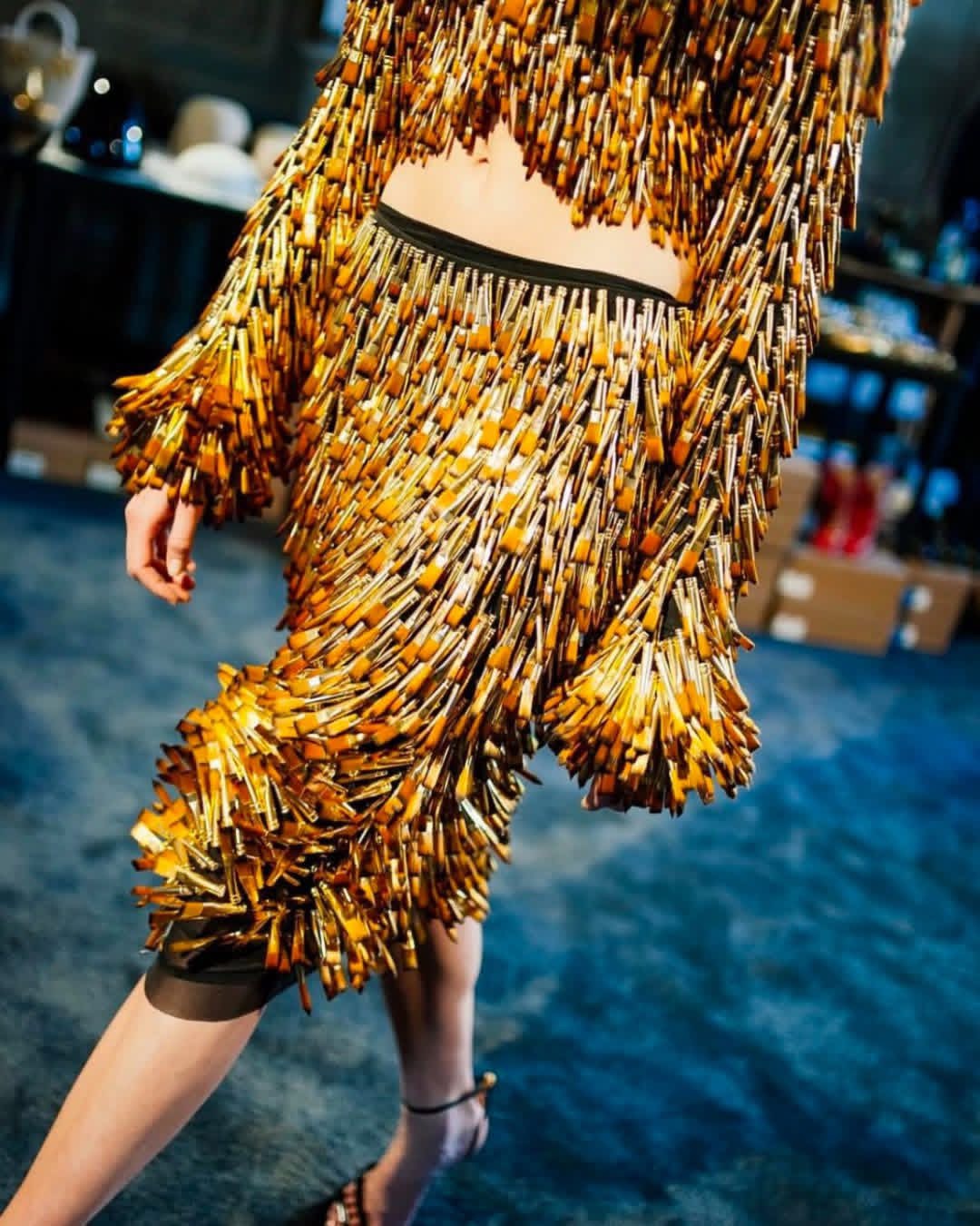 ولا يزال الفستان النحاسي الذي قدّمته دار سكياباريلي Schiaparelli للألبسة الجاهزة لموسم ربيع/صيف 2026 خلال أسبوع الموضة في باريس، من أغرب القطع التي قدمت لهذا الموسم، بسبب ابتكاره الفريد والبعيد عن المواد التقليدية التي تستخدم عادة في صناعة الأزياء.