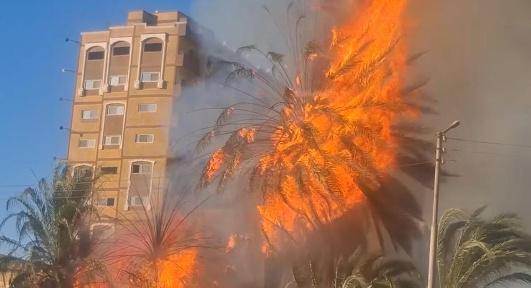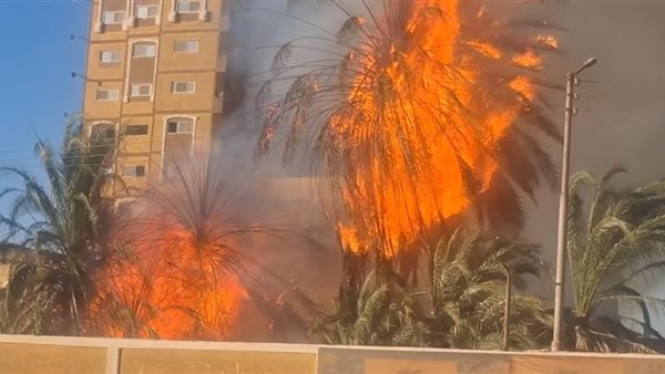 نشوب حريق هائل في أشجار النخيل بجوار محطة قطارات قنا |صور